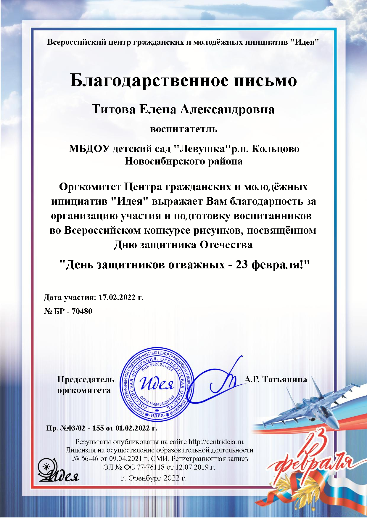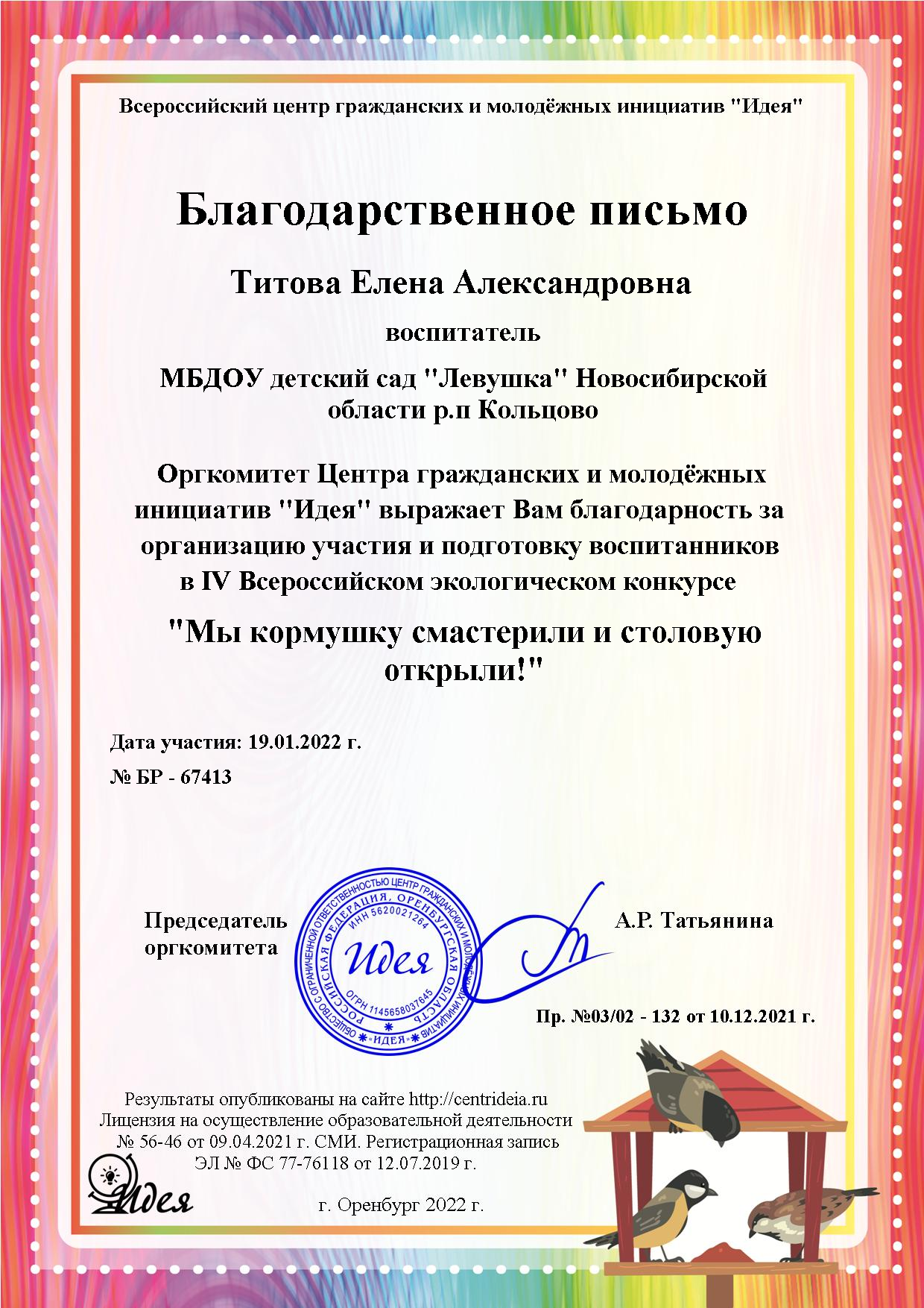благодарность 19.01.22