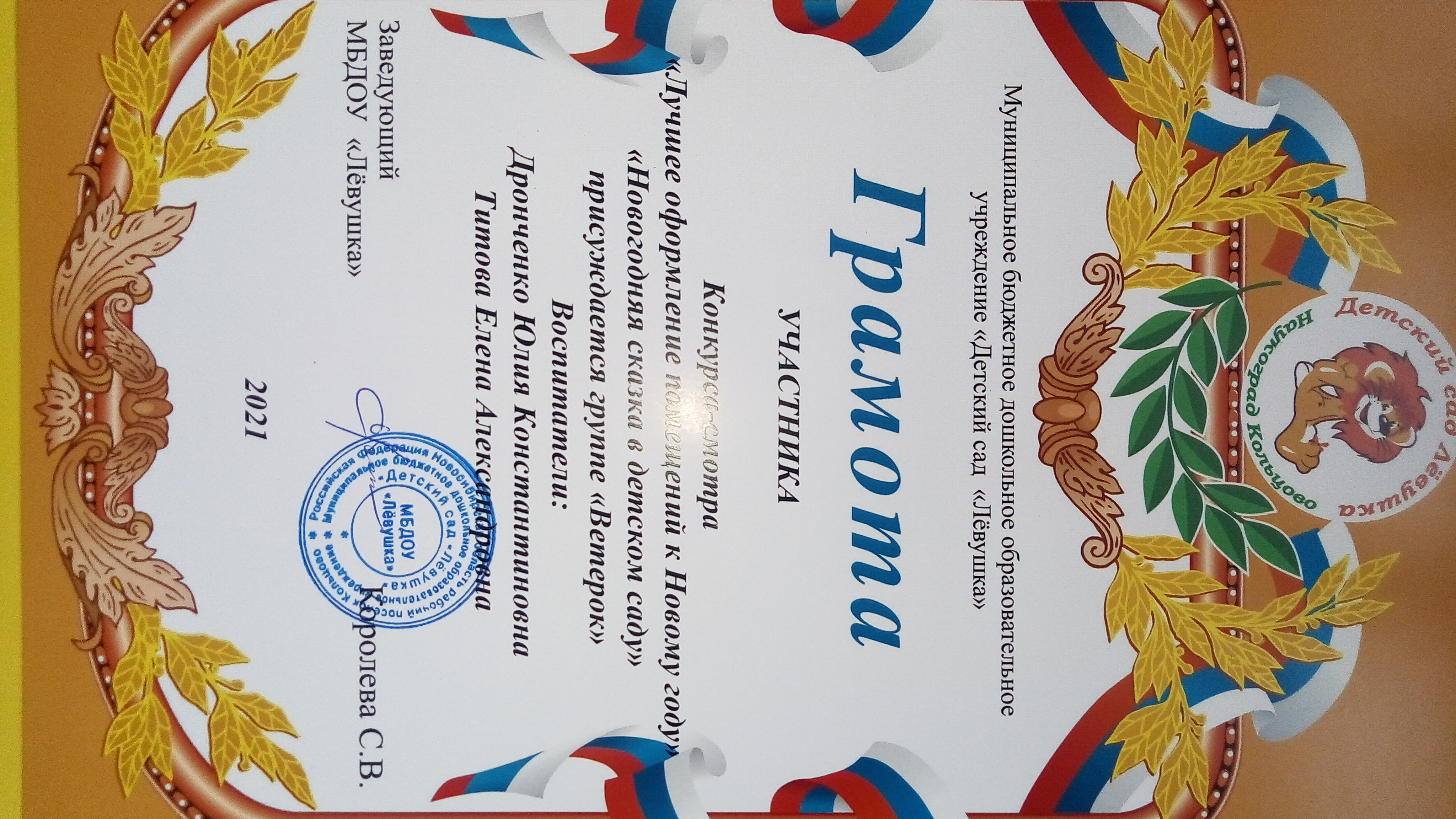 конкурс-смотр оформления группы к новому году 26.12.2021